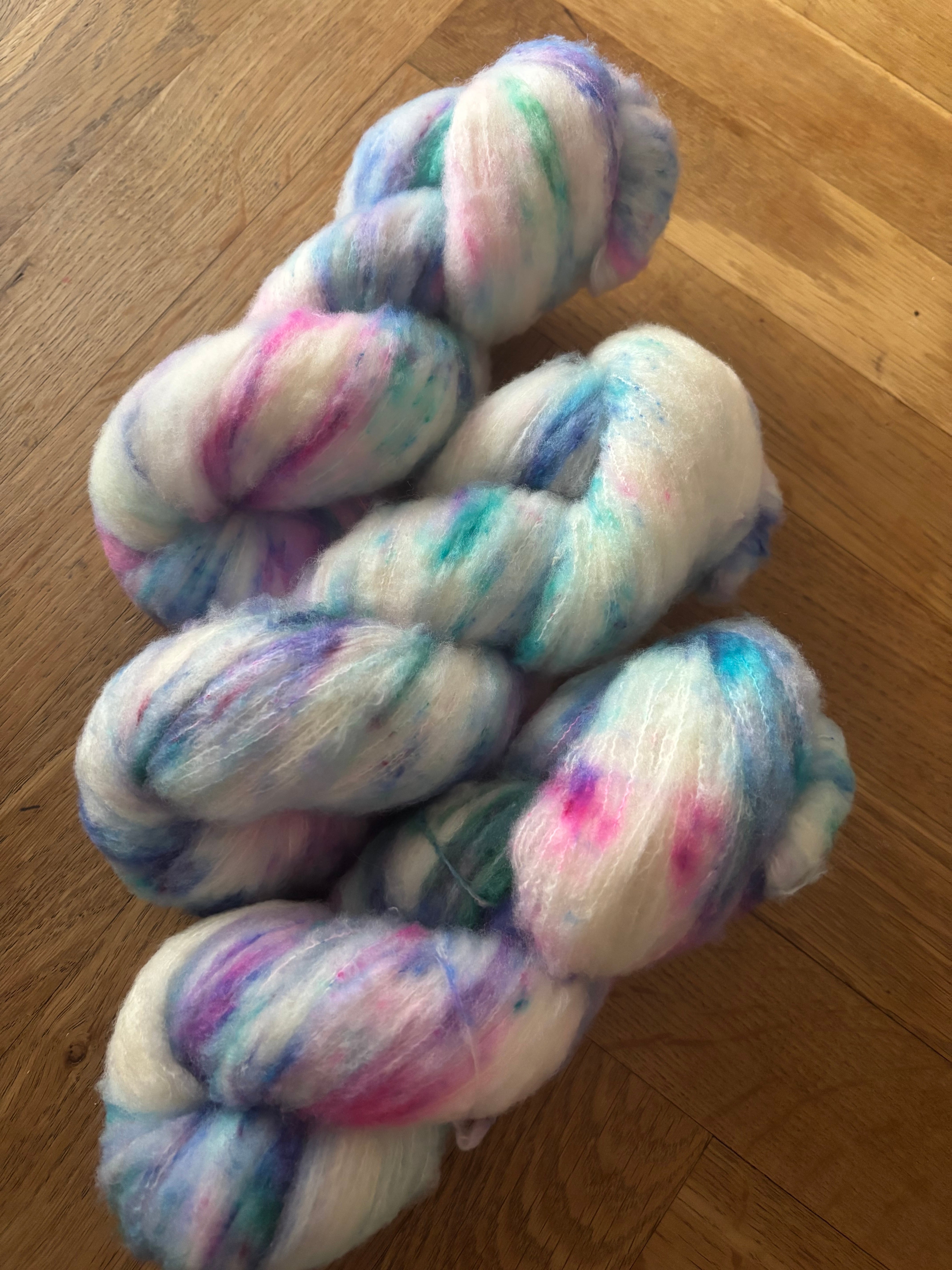 1カセ1カセ丁寧に染めておりますが、手染めゆえ、色飛び、ムラがあります。 それも手染め毛糸の味として、一期一会の色の出逢いをお楽しみ頂けたらと思います。